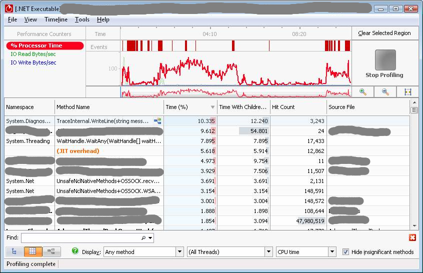 So what should you get out of this? Be very careful of how you invoke Logger.Write()…it may not be as cheap as you think it is. Even log4net took much more CPU time than I expected.
